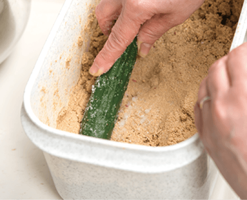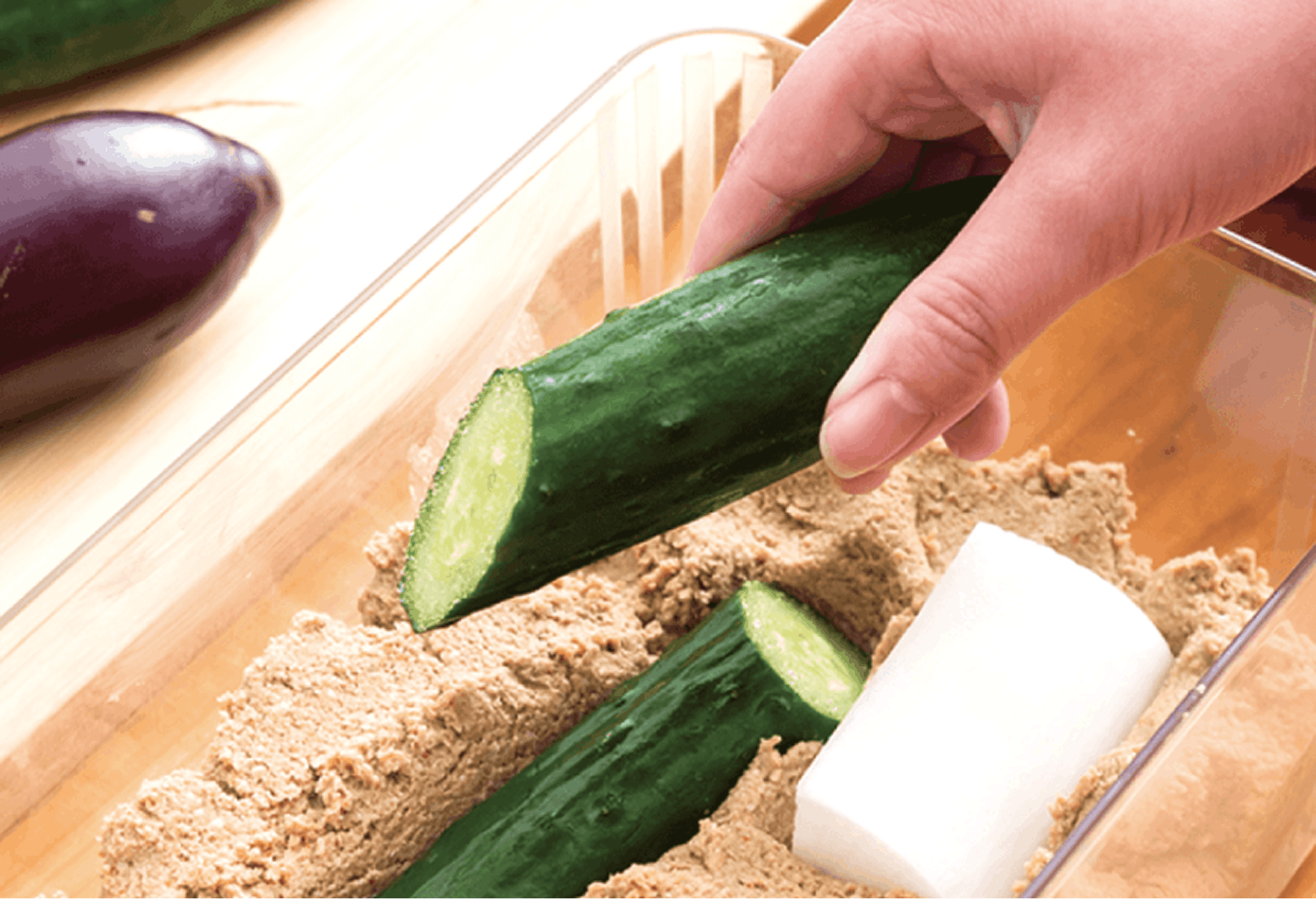 ぬか床に野菜を入れて埋める